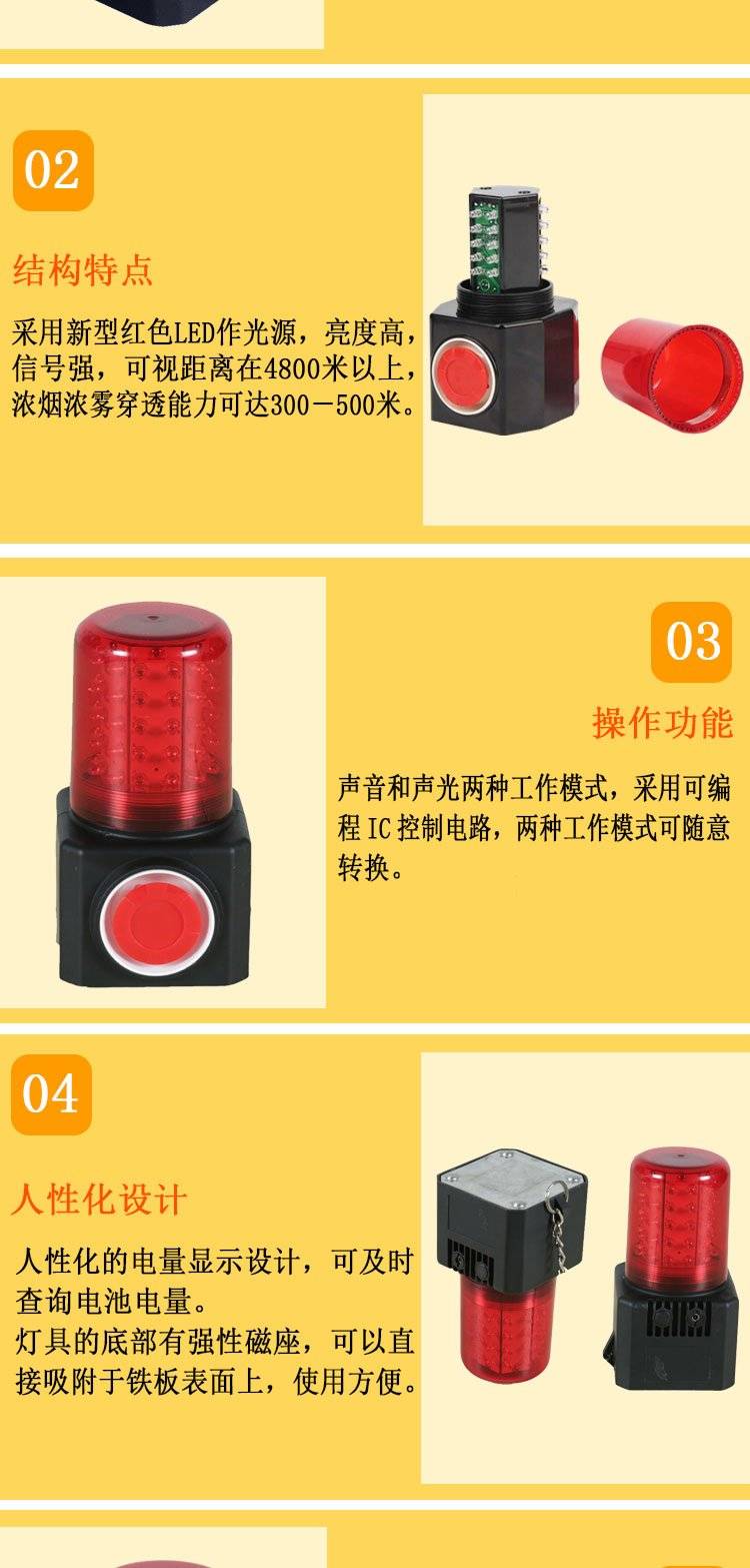 多功能声光报警灯 三防LED警示磁吸信号灯 充电式红色